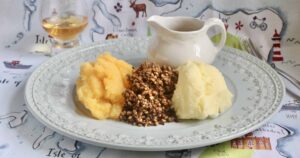 Attention Lads and Lassies! LIVE from our new location at Hillside Farm in Winsted, Connecticut! The Pantry is back with a deep dive into the flavors of Scotland! Gerri’s Grandmother, Mary Inches was straight off the boat from Blairgowrie, Scotland. You think the Scots have nothing good to eat? Think again! Today your tastebuds will be tickled by delicious things with funny names like Cock-a-Leekie Soup, Finnan Haddie, HAGGIS with mashed Neeps and Tatties, Rock Cakes, and Sticky Toffee Pudding! The Pandemic Pantry is back in its new old home with the same zany live studio audience, and the ghosts of Beautiful Grandmother Mary and cranky Ants Pam, Francis, and Katherine lurking about! BYOBagpipes! Kilts optional! 12:00 p.m, Facebook Live and Microsoft Teams.