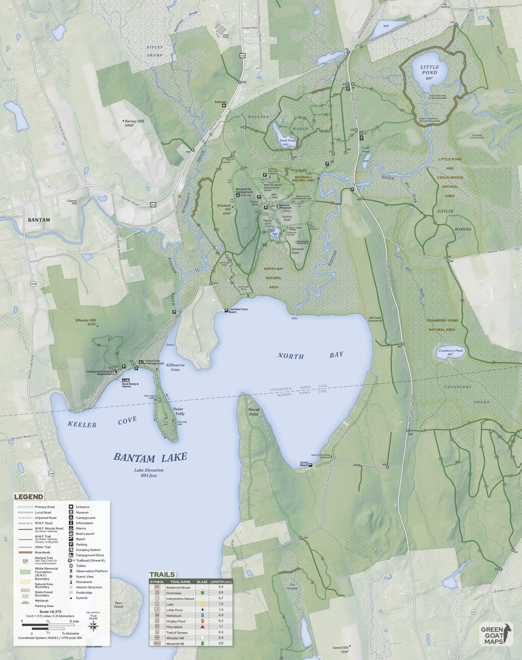 The White Memorial Foundation has 40 miles of trails that cover various habitats. The trails are open to the public, free of charge, for non-motorized passive recreation. This includes hiking, cross-country skiing and snowshoeing. Many are open to biking and horseback riding. With over 50 entrances, you can access the trail system from many locations throughout Litchfield and Morris.