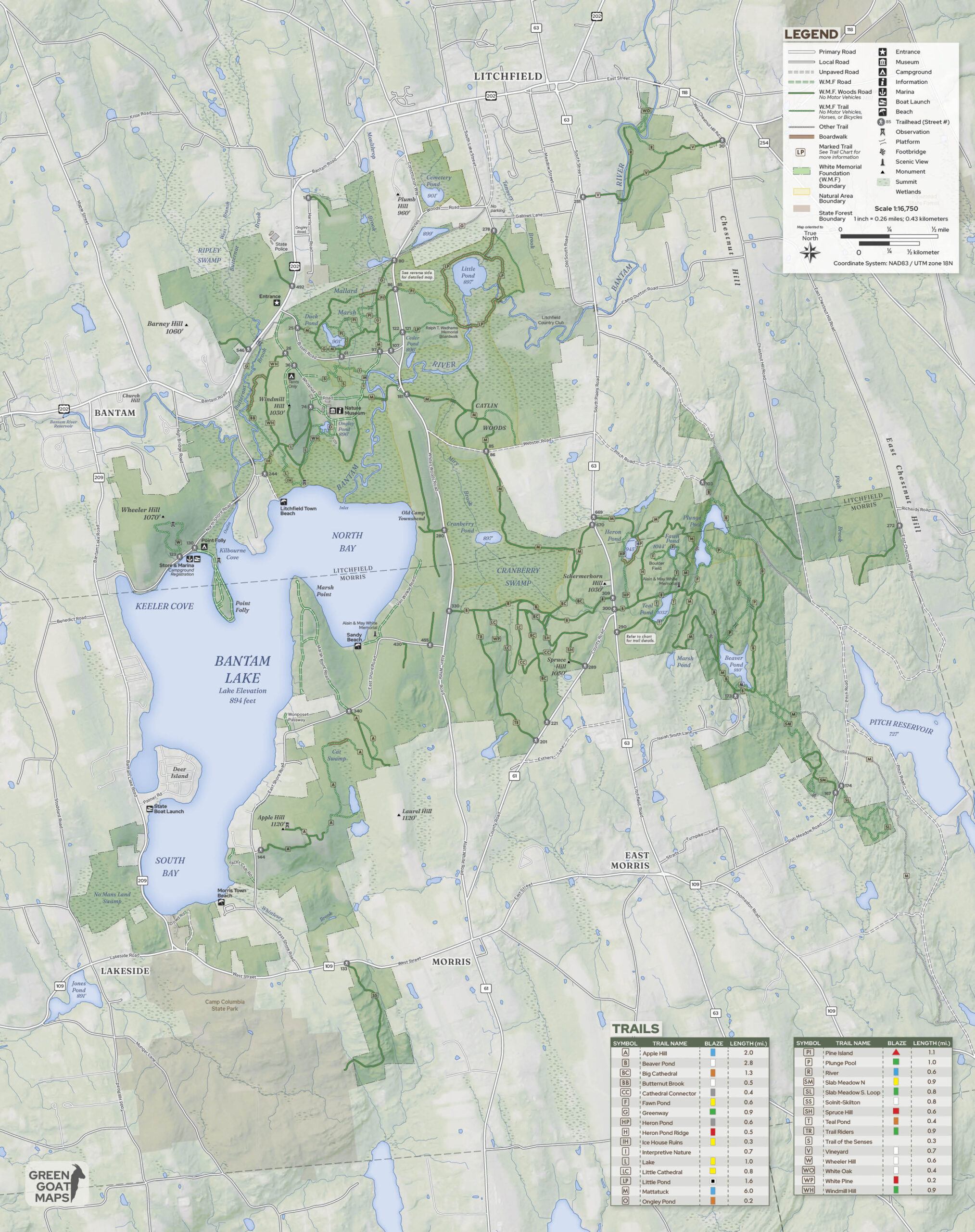 *Larger fold-out versions of the trail maps can be purchased online with the button below or at our museum, located at 80 Whitehall Road in Litchfield.